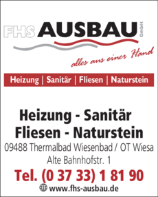 Die Adresse von FHS Ausbau GmbH lautet: Alte Bahnhofstr. 1, 09488 Thermalbad Wiesenbad