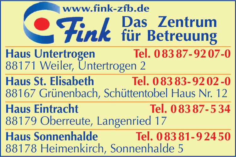 FINK Zentrum für Betreuung KG 08387 92 07-0 Weiler-Simmerberg Untertrogen 2 88171 Untertrogen de.teleauskunft.oetb.webapp2.detail.Graphic@1492acea