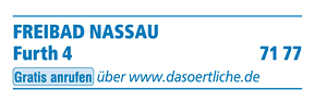 Die Adresse von FREIBAD NASSAU lautet: Furth 4, 56377 Nassau