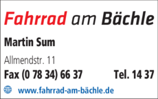 Fahrrad am Bächle bietet Fahrräder und Fahrradzubehör an.