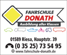 Die Adresse von Fahrschule Donath lautet: Hauptstr. 39, 01589 Riesa
