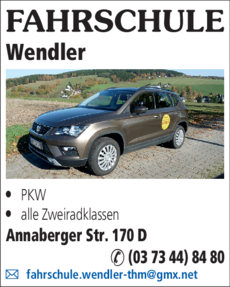 Die Adresse von Fahrschule Wendler lautet: Annaberger Str. 170 D, 09474 Crottendorf