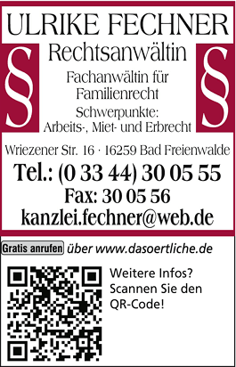 Fechner Ulrike Rechtsanwältin 03344 30 05 55 Bad Freienwalde (Oder) Wriezener Str. 16 16259 https://media.roeser-online.de/02/240/LOGO/000/378/685_200x100.png