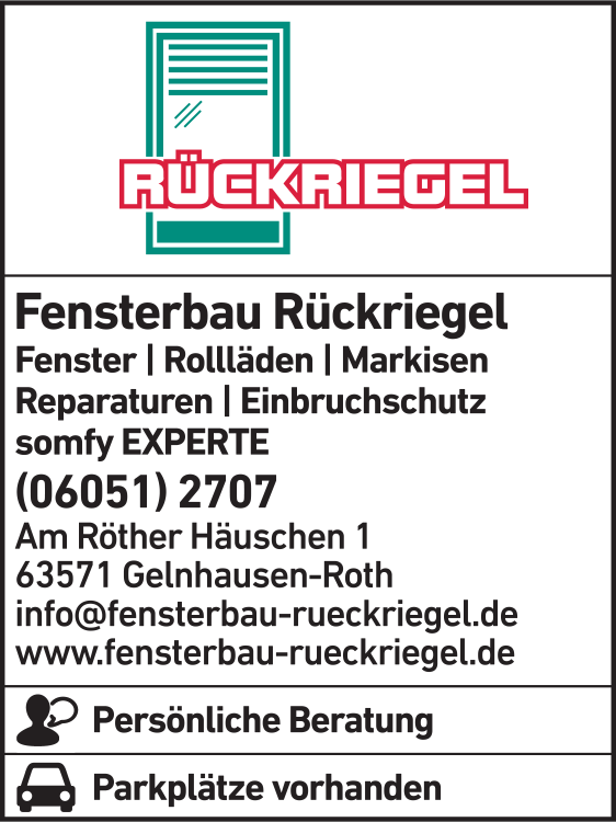 Die Adresse von Fensterbau Rückriegel lautet: Am Röther Häuschen 1, 63571 Gelnhausen-Roth