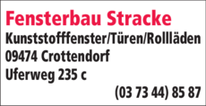Die Adresse von Fensterbau Stracke lautet: Uferweg 235 c, 09474 Crottendorf