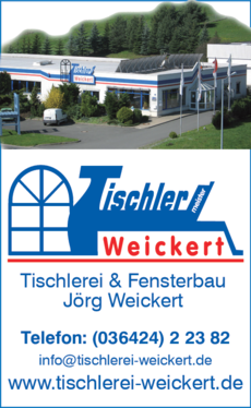 Die Adresse von Fensterbau & Tischlerei Weickert lautet: Im Camisch 16, 07768 Kahla