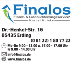 Die Adresse von Finalos Finanz- & Lohnbuchhaltungsservice lautet: Dr.-Henkel-Str. 16, 85435 Erding