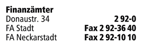 Finanzämter 0621 2 92-0 Mannheim L 3, 10 68161