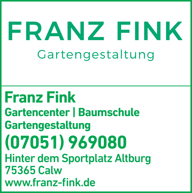 Die Adresse von Fink Franz Gartengestaltung lautet: Stauchgasse 4, 75365 Calw