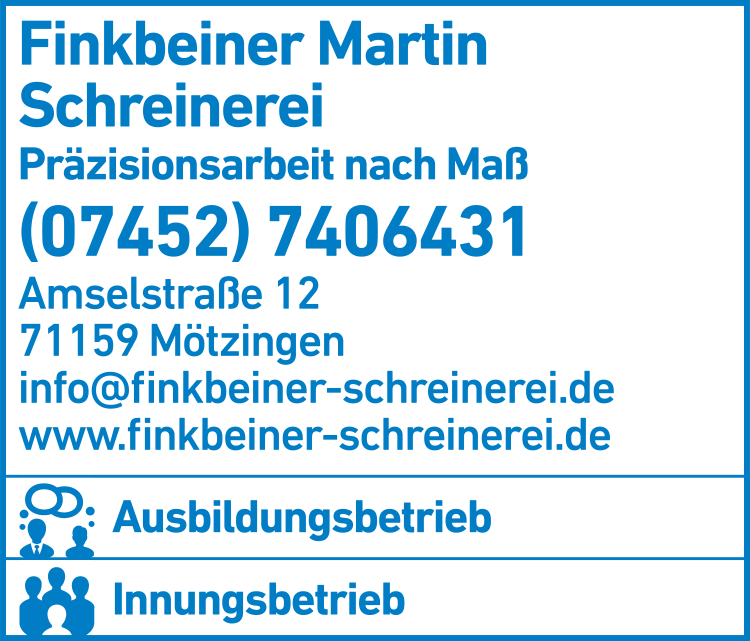 Finkbeiner Martin - Präzisionsarbeit nach Maß Schreinerei und Möbelschreinerei 07452 7 40 64 31 Mötzingen Amselstr. 12 71159