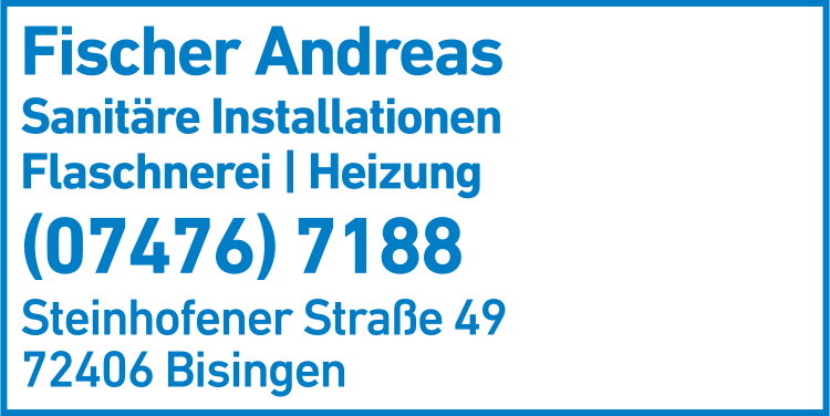 Fischer Andreas Sanitäre Installation 07476 71 88 Bisingen Steinhofener Str. 49 72406