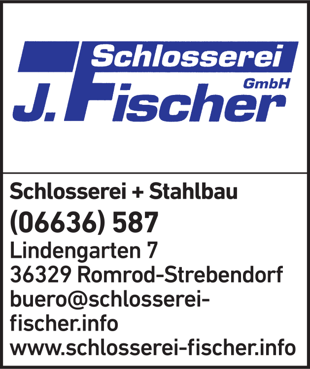 Die Adresse von Fischer Josef Schlosserei lautet: Lindengarten 7, 36329 Romrod