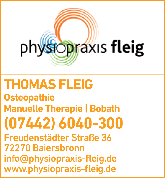 Die Adresse von Fleig Thomas Physiotherapeutische Praxis lautet: Freudenstädter Str. 36, 72270 Baiersbronn