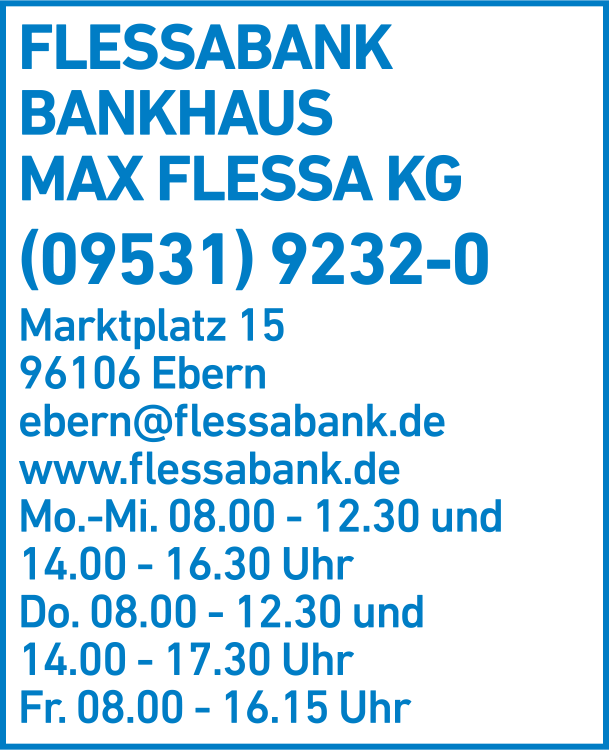Die Adresse von Flessabank Bankhaus Max Flessa KG lautet: Marktplatz 15, 96106 Ebern