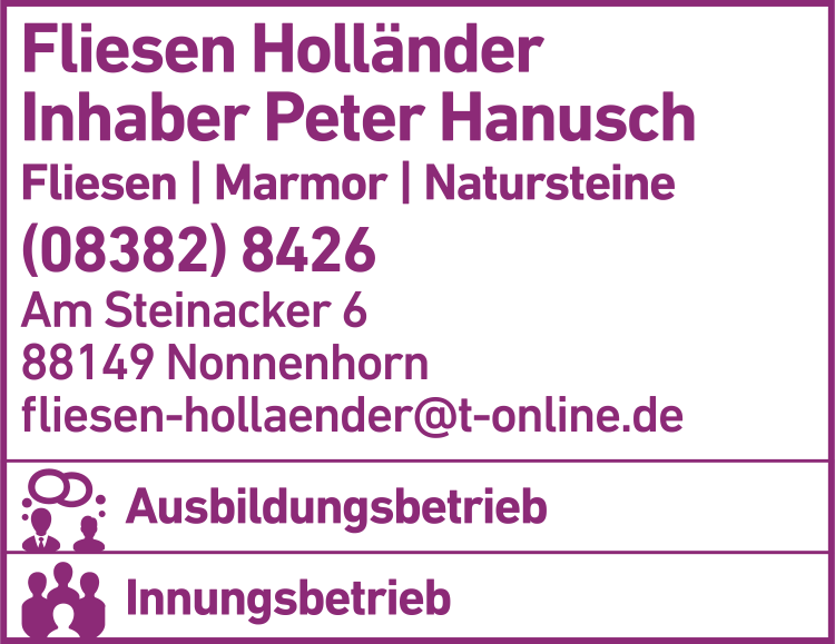Die Adresse von Fliesen Holländer lautet: Am Steinacker 6, 88149 Nonnenhorn