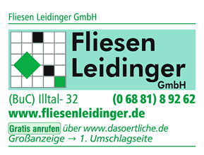 Die Adresse von Fliesen Leidinger GmbH lautet: Illtalstr. 32, 66571 Eppelborn