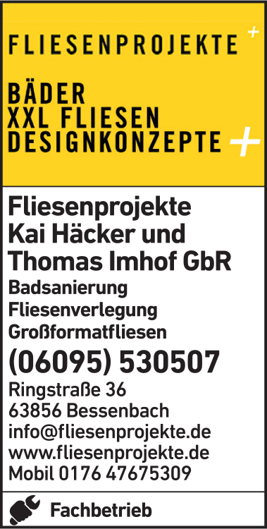 Fliesenprojekte GbR Geschäftsführer Kai Häcker, Thomas Imhof 06095 53 05 07 Bessenbach Ringstr. 36 63856 Keilberg de.teleauskunft.oetb.webapp2.detail.Graphic@3a4c3ea4