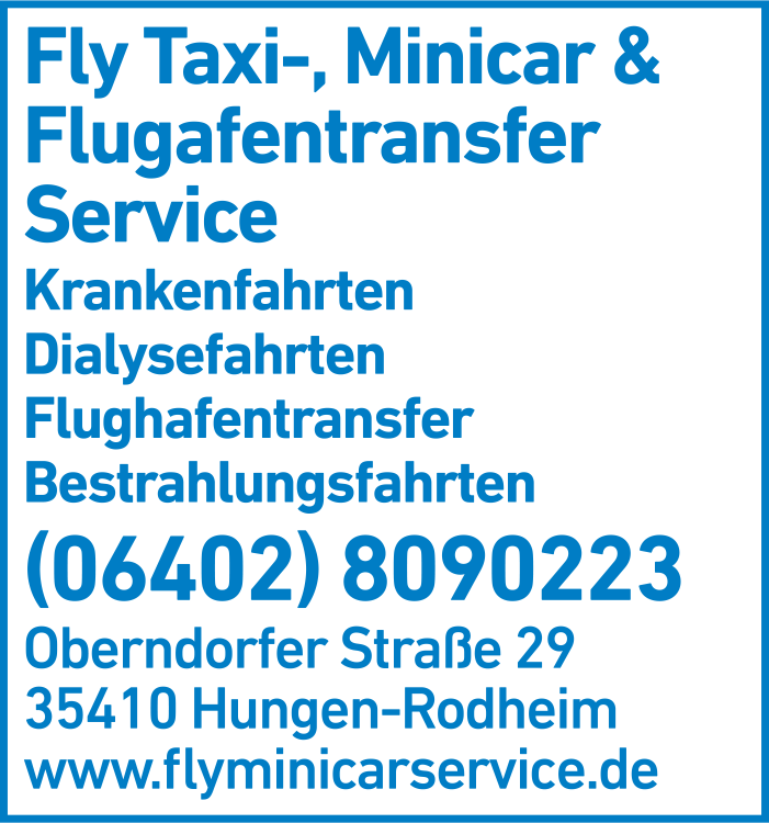 Die Adresse von Fly Minicar und Taxi Service lautet: Oberndorfer Str. 29, 35410 Hungen