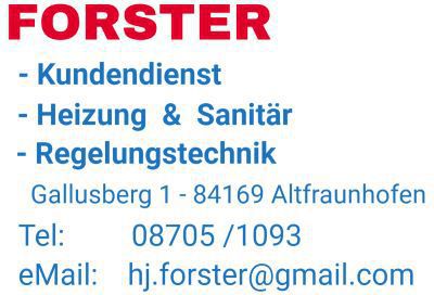 Die Adresse von Forster Heizung & Sanitär Kundendienst lautet: Gallusberg 1, 84169 Altfraunhofen