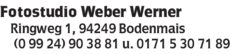 Die Adresse von Fotostudio Weber lautet: Ringweg 1, 94249 Bodenmais