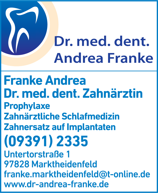Die Adresse von Franke Andrea Dr. med. dent. Zahnärztin lautet: Untertorstr. 1, 97828 Marktheidenfeld