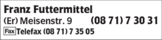 Die Adresse von Franz Futtermittel lautet: Meisenstr. 9, 84030 Ergolding