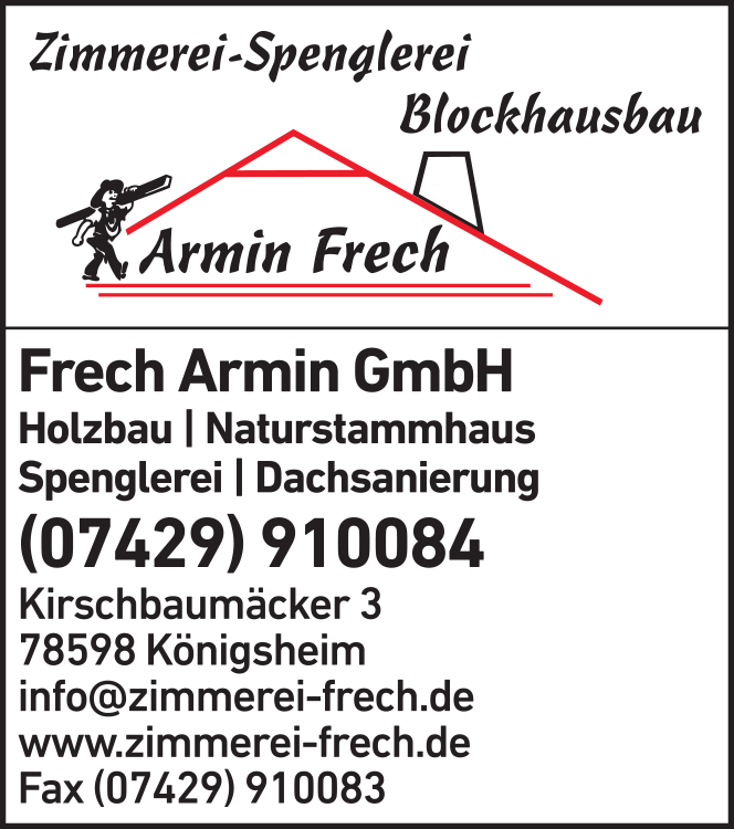 Frech Armin Zimmerei 07429 91 00 84 Königsheim Kirschbaumäcker 3 78598