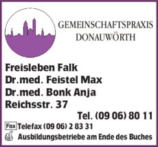 Freisleben Falk , Feistle Max Dr.med., Bonk Anja Dr.med. 0906 80 11 Donauwörth Reichsstr. 37 86609 https://ies.v4all.de/0122/OETB/0106/6/1396/20171396_200x100px.png