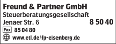 Die Adresse von Freund & Partner GmbH lautet: Jenaer Str. 6, 07607 Eisenberg
