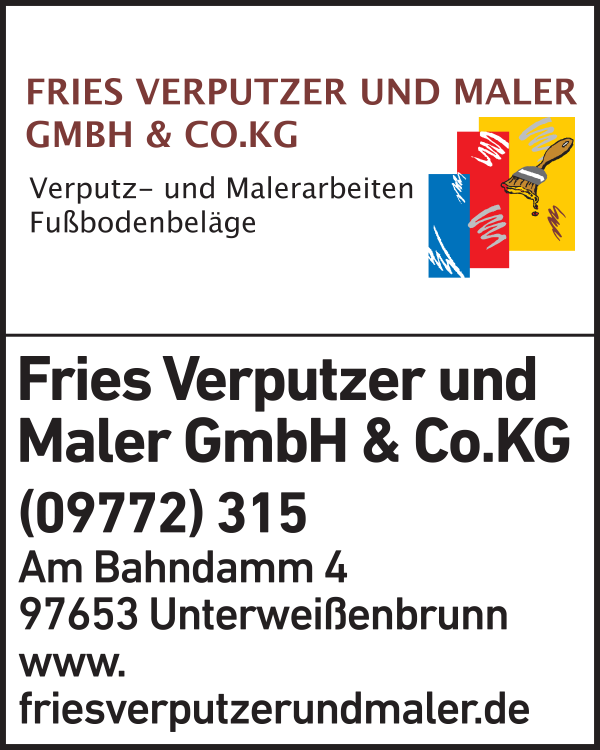 Fries Verputzer u. Maler GmbH & Co. KG 09772 3 15 Unterweißenbrunn Am Bahndamm 4 97653 Unterweißenbrunn
