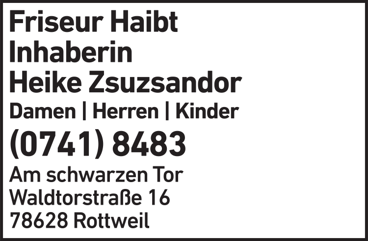 Die Adresse von Friseur Haibt lautet: Waldtorstr. 16, 78628 Rottweil