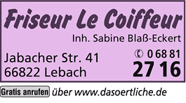 Die Adresse von Friseur Le Coiffeur lautet: Jabacher Str. 41, 66822 Lebach