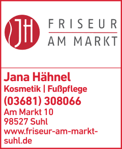 Die Adresse von Friseur am Markt Jana Hähnel lautet: Marktplatz 10, 98527 Suhl