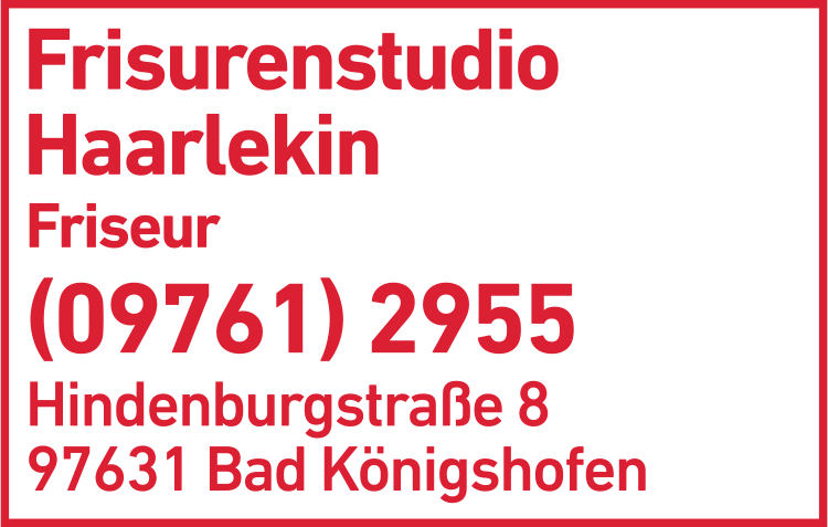 Die Adresse von Friseursalon Haarlekin lautet: Hindenburgstr. 8, 97631 Bad Königshofen i. Grabfeld