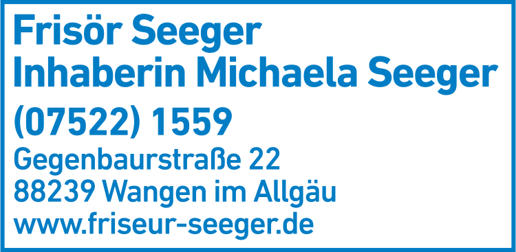 Die Adresse von Friseursalon Seeger Inh. Michaela Seeger lautet: Gegenbaurstr. 22, 88239 Wangen