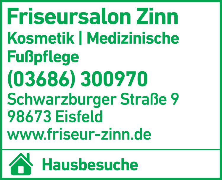 Die Adresse von Friseursalon Zinn lautet: Schwarzburger Str. 9 B, 98673 Eisfeld