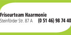 Die Adresse von Friseurteam Haarmonie lautet: Steinförder Str. 87 A, 29323 Wietze