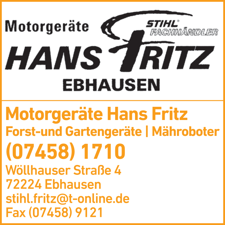 Die Adresse von Fritz Hans Forst- und Gartengeräte lautet: Wöllhauser Str. 4, 72224 Ebhausen
