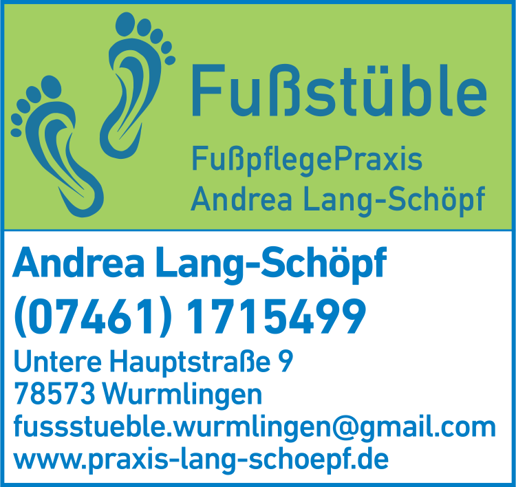 Fußstüble Andrea Lang-Schöpf 07461 1 71 54 99 Wurmlingen Untere Hauptstr. 9 78573