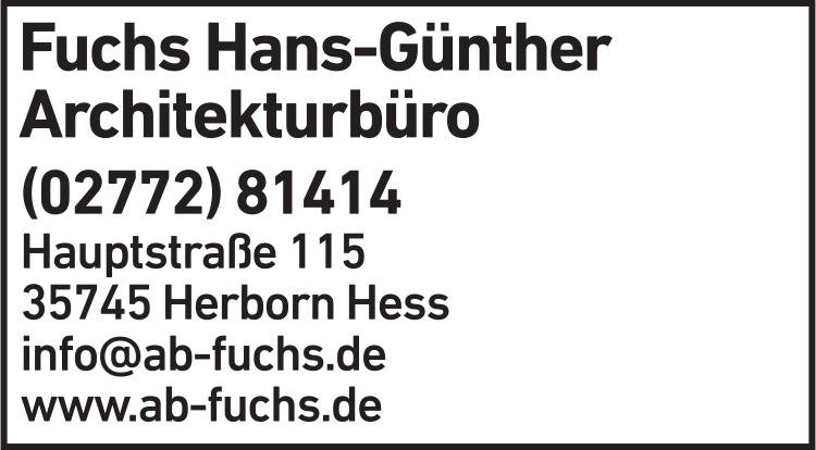 Fuchs Architekturbüro 02772 8 14 14 Herborn Hauptstr. 115 35745