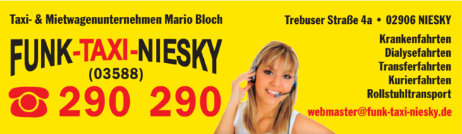 Die Adresse von Funk-Taxi-Niesky lautet: Trebuser Str. 4 a, 02906 Niesky