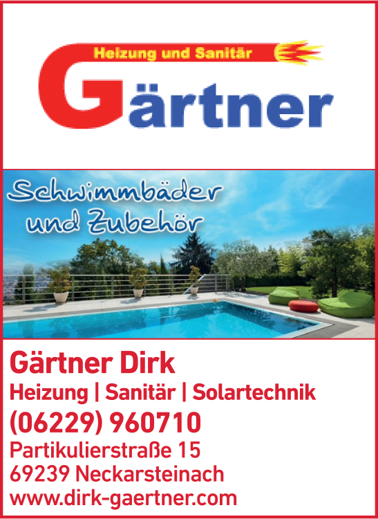 Die Adresse von Gärtner Dirk Heizung u. Sanitär lautet: Partikulierstr. 15, 69239 Neckarsteinach