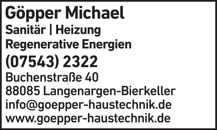 Göpper Michael Bauschlosserei 07543 23 22 Langenargen Buchenstr. 40 88085 Bierkeller-Waldeck