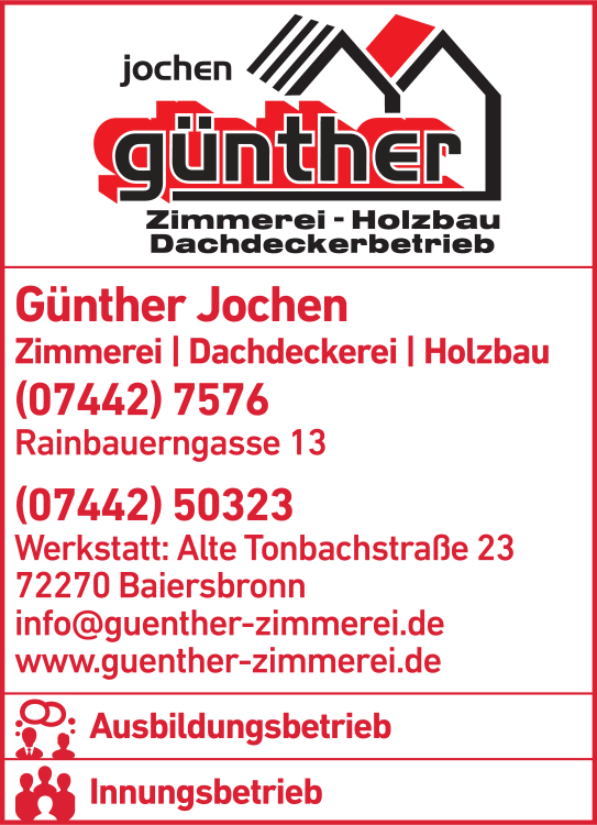 Die Adresse von Günther Jochen Zimmerei lautet: Rainbauerngasse 13, 72270 Baiersbronn-Tonbach