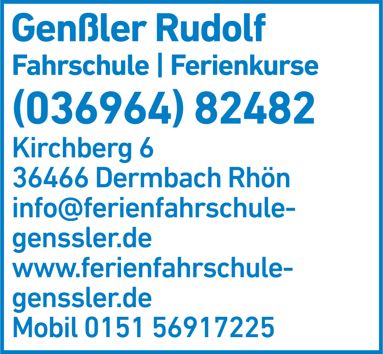 Die Adresse von GENßLER Fahrschule lautet: Kirchberg 6, 36466 Dermbach