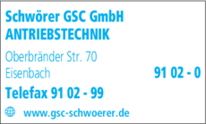 Die Adresse von GSC Schwörer GmbH lautet: Oberbränder Str. 70, 79871 Eisenbach