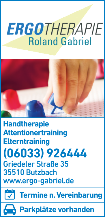 Die Adresse von Gabriel Roland Praxis für Ergotherapie lautet: Griedeler Str. 35, 35510 Butzbach