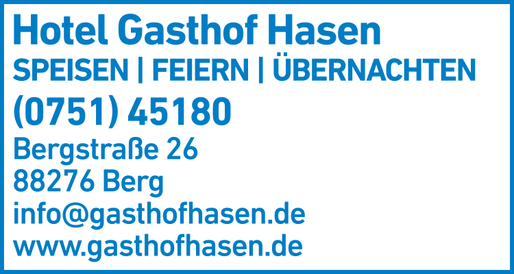 Die Adresse von Gasthof zum Hasen lautet: Bergstr. 26, 88276 Berg