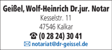 Geißel Dr.jur. Wolf-Heinrich 02824 30 41 Kalkar Kesselstr. 11 47546