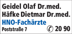 Geidel Olaf, Häfke Dietmar hat montags bis dienstags von 08:00 - 12:00 Uhr und 14:00 - 18:00 Uhr, mittwochs von 08:00 - 12:00 Uhr und donnerstags bis freitags von 08:00 - 12:00 Uhr und 14:00 - 18:00 Uhr geöffnet.